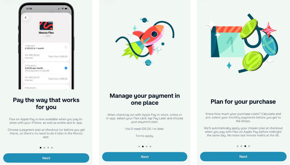 As a Monzo customer I’ve been able to experience Monzo’s BNPL offering first-hand. Known as Monzo Flex, after paying with Apple Pay, I can open the Monzo app, find any transaction from the past two weeks, and split it into three separate monthly instalments, interest-free, or extend it to six instalments with interest.