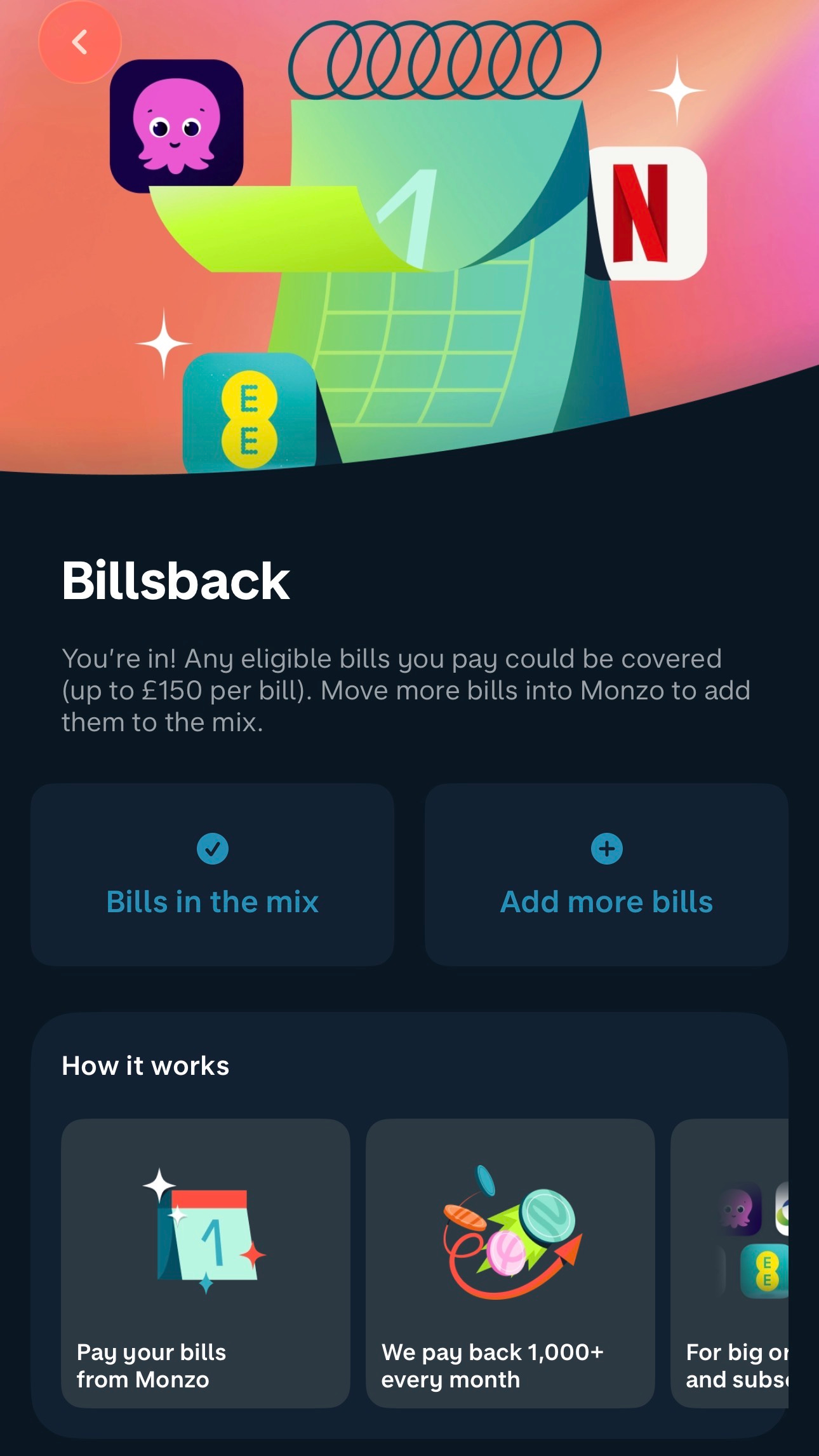 Billsback works similarly but targets recurring payments. Each month, Monzo refunds around 1,000 customer bills in full (up to £150 each). Everything from Netflix to utility bills is in scope provided your Monzo debit card is used for payment. It’s a direct financial incentive for users to move regular payments across to Monzo, and those who do so will likely make Monzo their primary account.